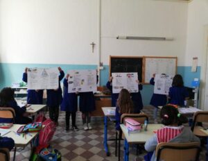 Il Ministero dell’Istruzione, di concerto con il Ministero degli Affari Esteri e della Cooperazione Internazionale, ha proposto alle scuole Primarie, Secondarie di primo e secondo grado di “creare occasioni di approfondimento dell’attività didattica del 16 ottobre sul tema “Le nostre azioni sono il nostro futuro. Produzione migliore, nutrizione migliore, ambiente migliore e vita migliore”. La proposta didattica ha coinvolto gli alunni della nostra scuola Primaria e Secondaria di primo grado affinché diventino protagonisti attivi del cambiamento, sostenitori e “Eroi dell’alimentazione”. All’attività di sensibilizzazione sul tema della GMA, gli alunni dell’I.C. Melchionda – De Bonis sono stati coinvolti nell’affascinante mondo dell’alimentazione e dell’agricoltura supportate da strumenti didattici (libro delle attività, video didattici, attività interattive…), proposti dalla FAO. L’attività didattica conclusiva ha visto gli alunni artefici nella realizzazione di un poster e attività interdisciplinari interattive, raffigurando “il viaggio di un alimento” sul tema della stagionalità alimentare e della sostenibilità ambientale nonché della conoscenza della filiera alimentare promuovendo la cultura della filiera corta (Km 0). La finalità educativa è quella di garantire un “futuro più sano per le persone e per il pianeta”, diminuire l’impatto ambientale, lo spreco e favorire una corretta alimentazione. I poster realizzati, saranno oggetto del concorso poster per la Giornata dell’Alimentazione organizzato dalla FAO. (https://www.fao.org/world-food-day/it).