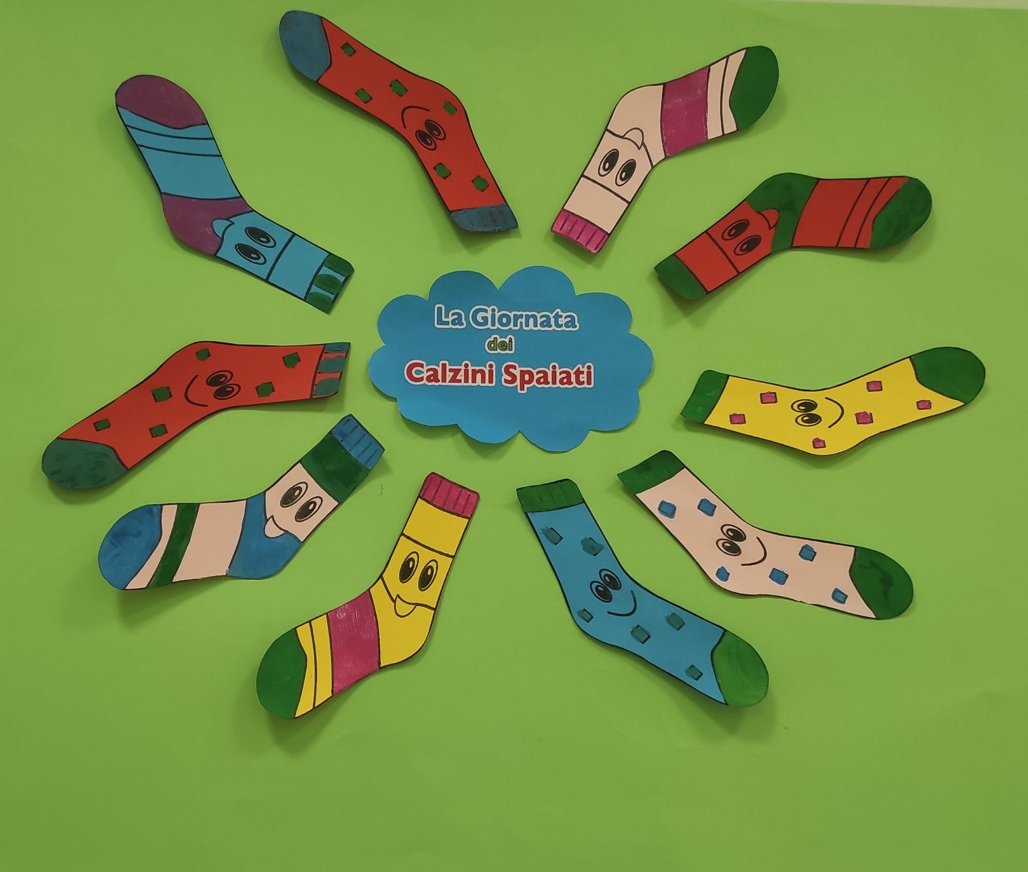 Questa mattina i bambini della Scuola dell’Infanzia, Sez. D, hanno indossato calzini non uguali tra loro, ovvero “spaiati”.