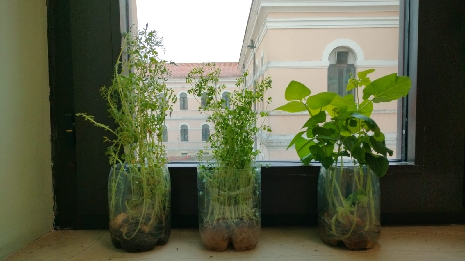 In fondi di bottiglie di plastica hanno adagiato i semi, li hanno coperti con l’ovatta e, giorno per giorno, li hanno inumiditi.