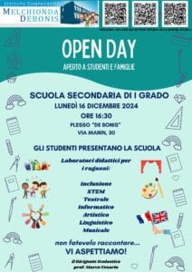 Ritorna l’appuntamento con gli Open Day dell’IC “Melchionda – De Bonis” il 16 Dicembre al Plesso De Bonis e il 17 Dicembre al Plesso Melchionda.